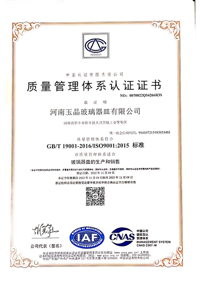 质量管理体系认证证书